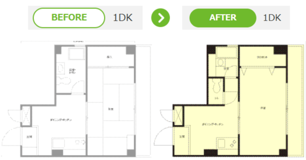 新宿の単身者向け賃貸マンションをフルリフォームした事例がこちら。老築化が目立ち始めたため、次の借主が決まる前に着工しました。