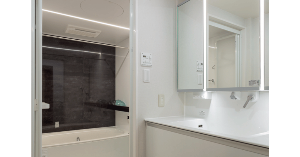 • 天井にまっすぐ通ったLED照明でお風呂がぐっと明るくなりました。