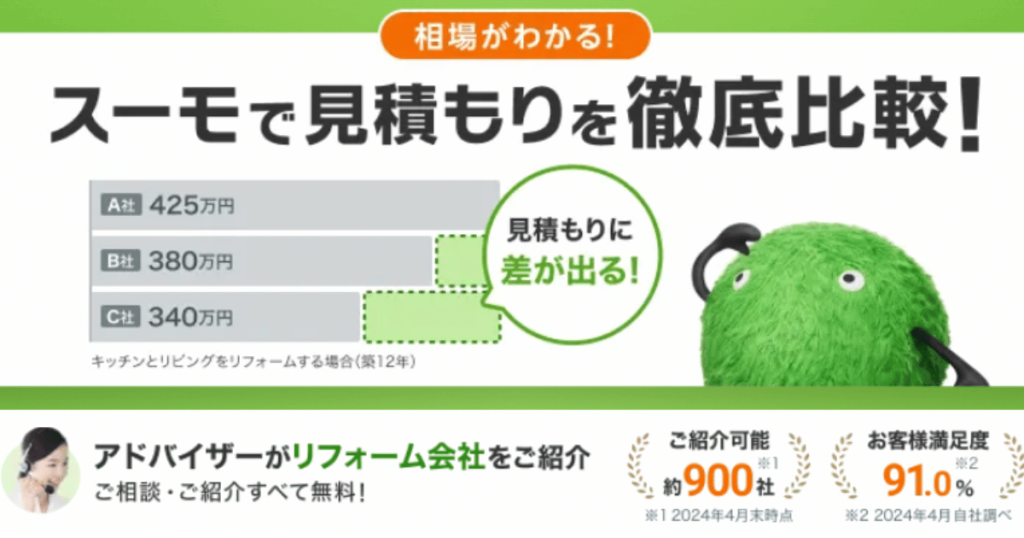 スーモカウンターなら建て替えとリフォームの両方に対応できる建築会社を紹介してもらえるので、両方の見積もりやプランを比較した上で、あなたにとって本当にベストな選択ができますよ。